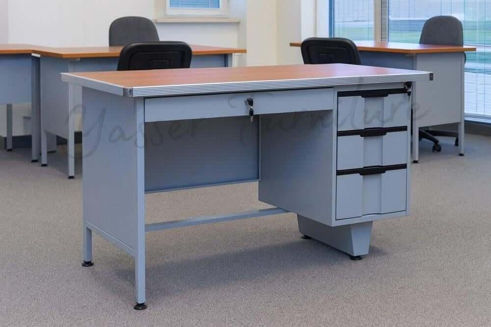 مزود بثلاثة أدراج توفر سعة تخزينية منظمة للملفات والمستلزمات، مما يجعله خيارًا مثاليًا للمكاتب والمساحات الإدارية.