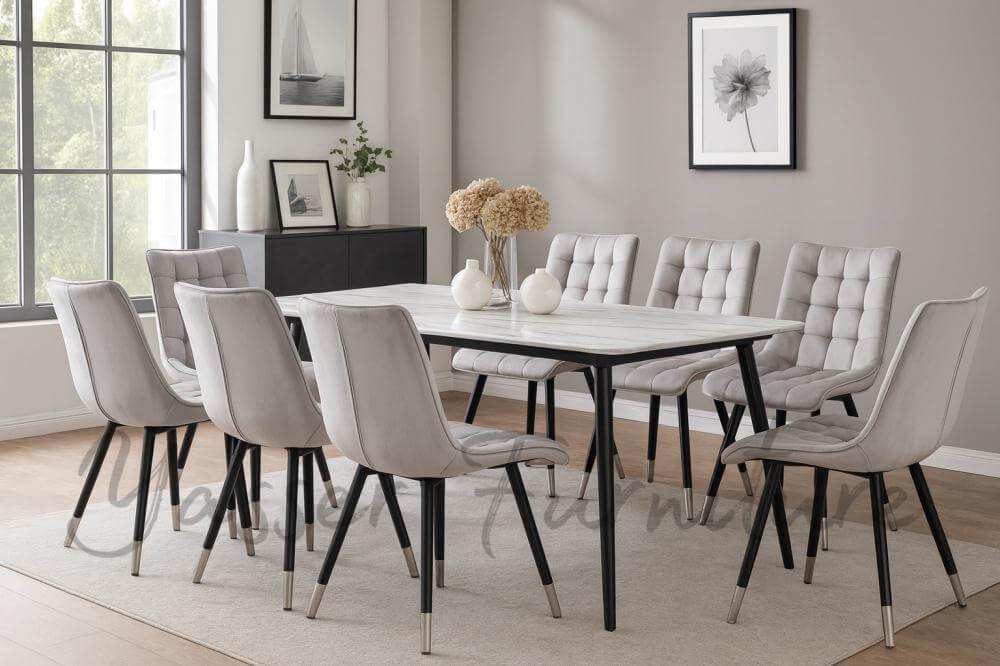 طقم طاولة طعام أنيق مكون من طاولة و8 كراسي،