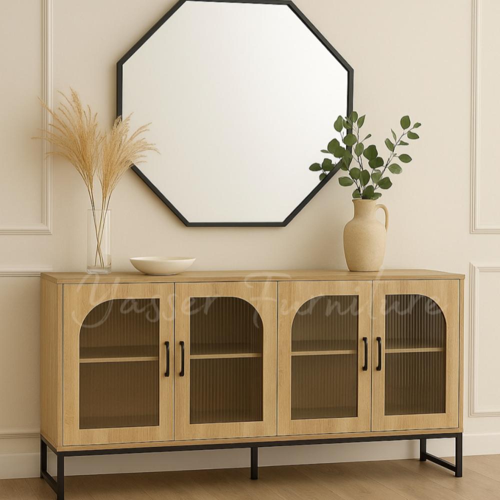 بوفيه بتصميم عصري فاخر يجمع بين دفء الخشب الطبيعي