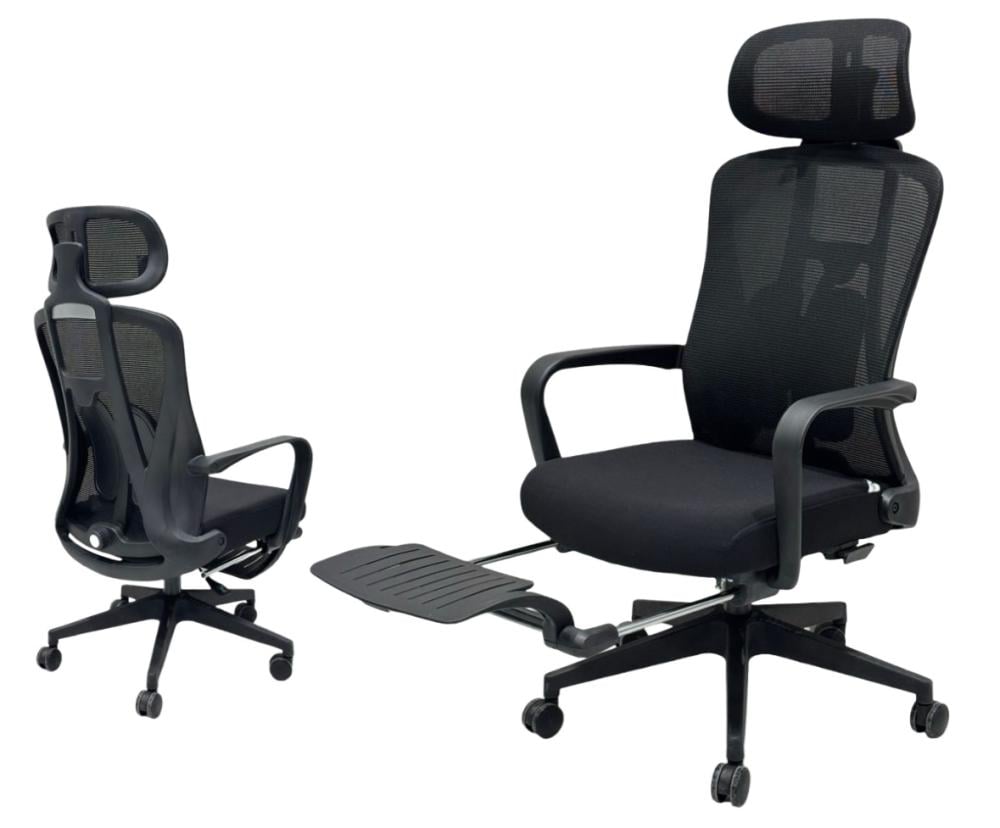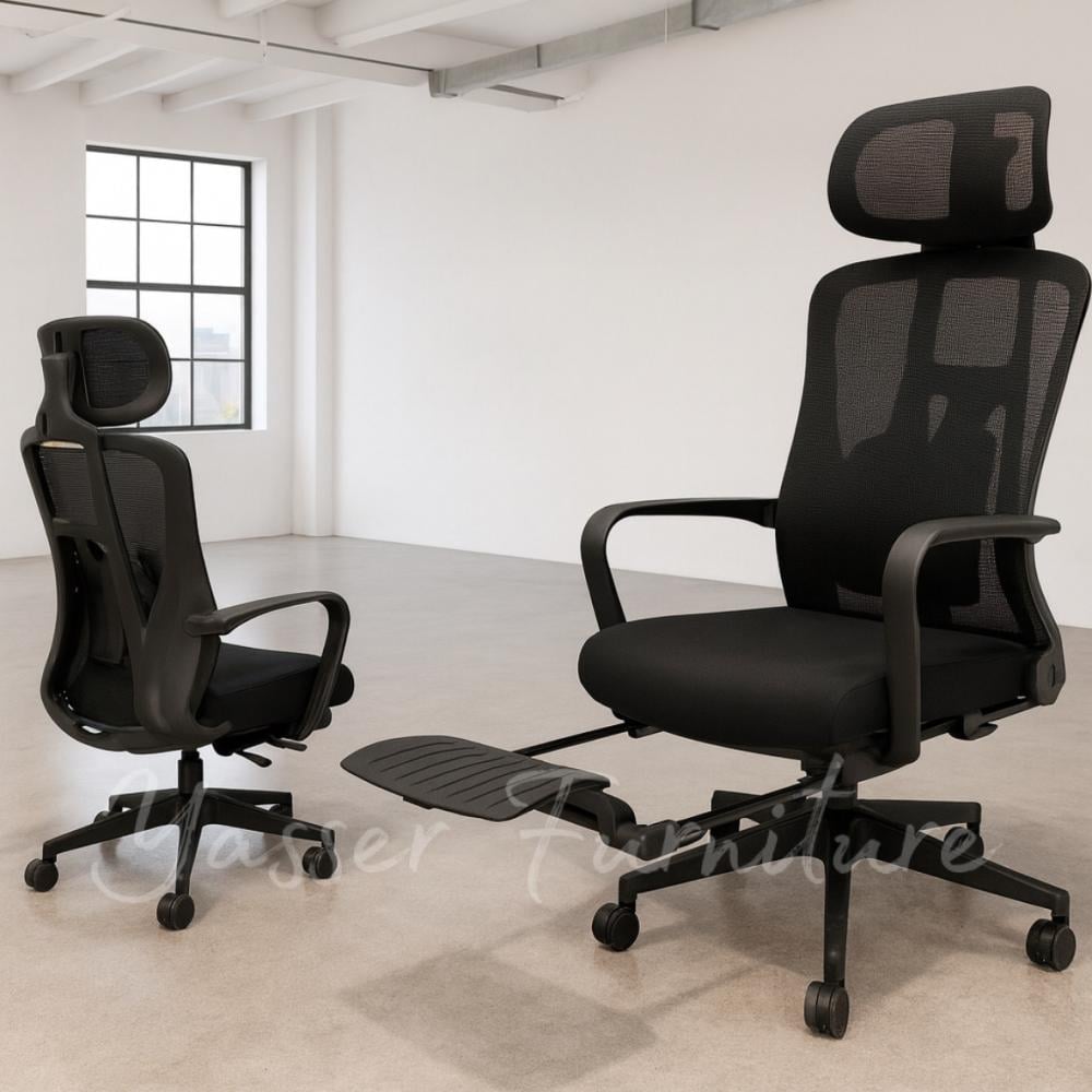 ومقعد قماش سلك مبطن يمنحك جلسة مريحة لساعات طويلة، مزود بمسند قدم يمكن فرده للاسترخاء أو تطبيقه بسهولة