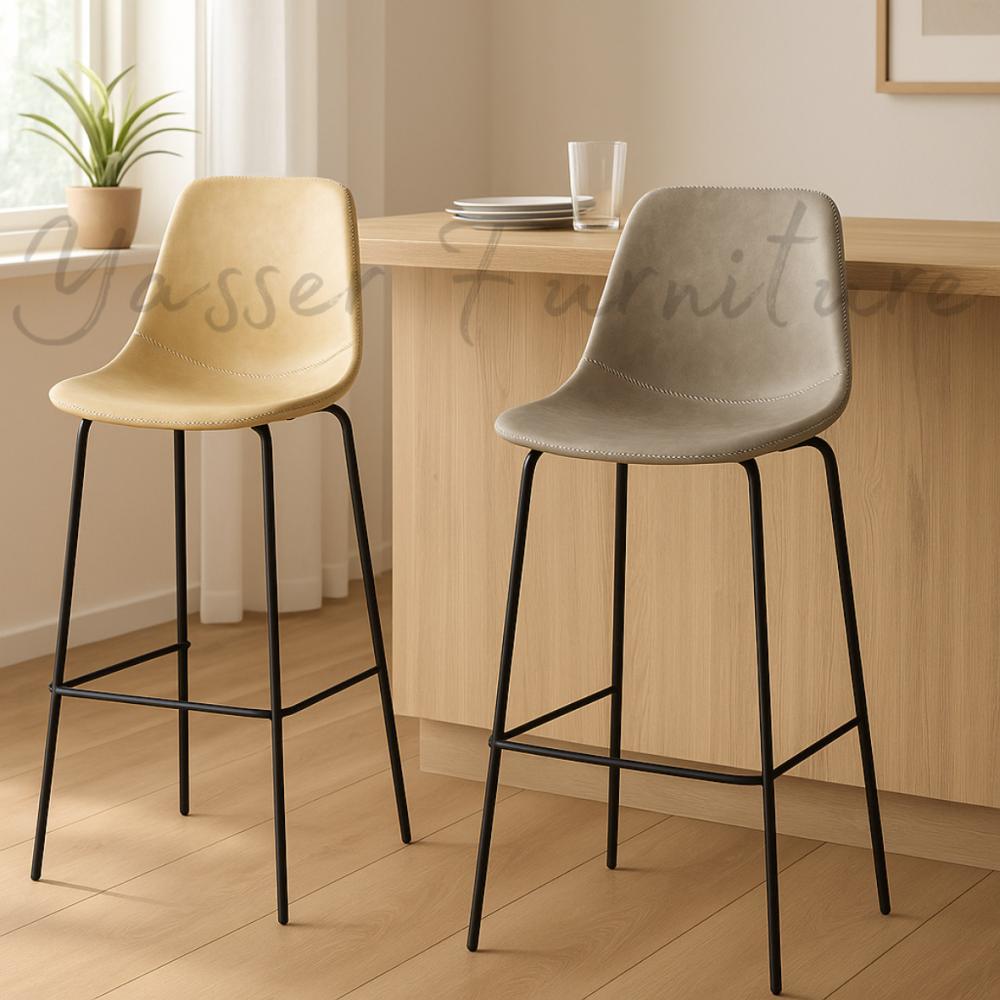 بمقعد قماش جلد بعدة ألوان ، مريح وأرجل معدنية قوية، يضيف لمسة أنيقة وعملية على المطابخ والبارات.