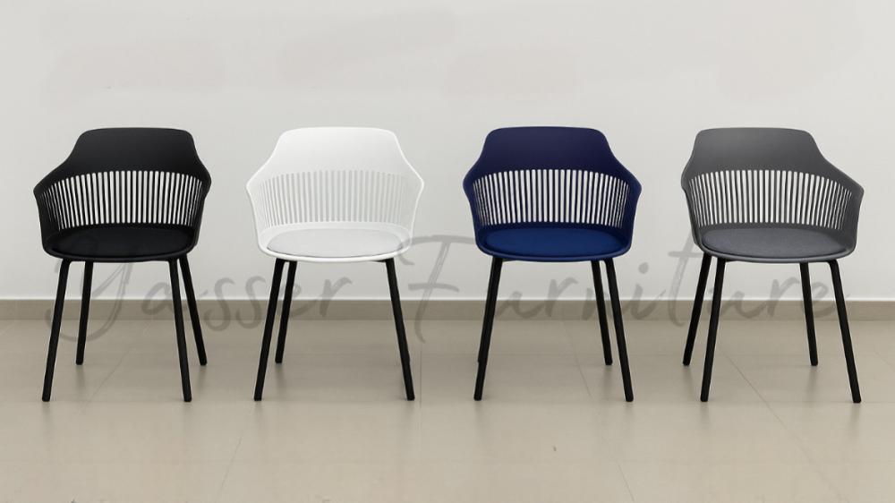 كرسي بلاستيك بمقعد قماش وظهر شبك يتميز بتصميم عصري مريح يضمن التهوية الجيدة للجلوس لفترات طويلة. مزوّد بقواعد حديد قوية تزيد من ثباته ومتانته، ما يجعله مثاليًا للاستخدام الداخلي والخارجي سواء في الحدائق أو الكافيهات أو المساحات المكتبية. متوفر بعدة ألوان جذابة ليناسب مختلف الأذواق والديكورات.