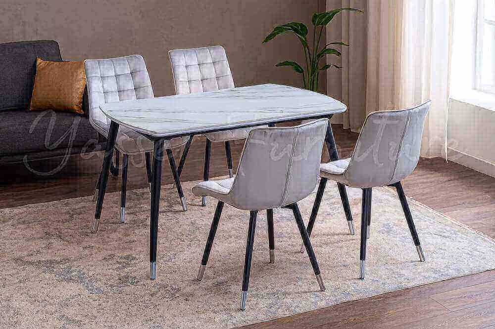 سطح الطاولة مصنوع من السيراميك المتين بلمسة فاخرة،