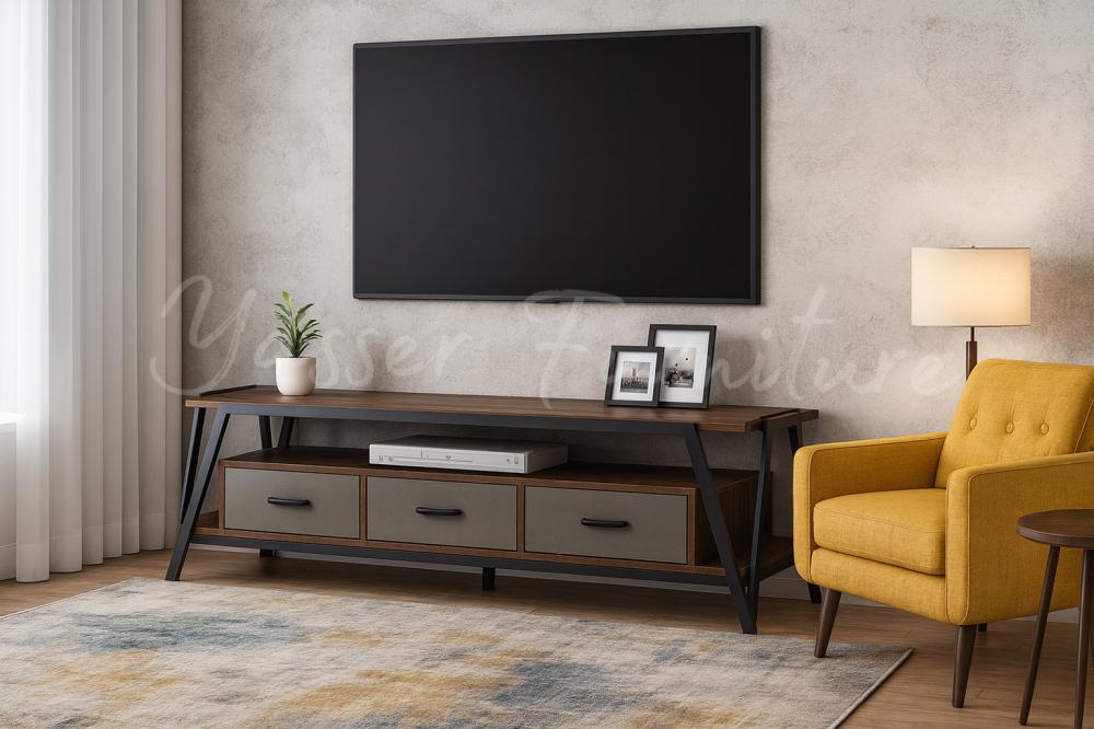 مع رف علوي واسع لوضع التلفاز أو الديكورات.