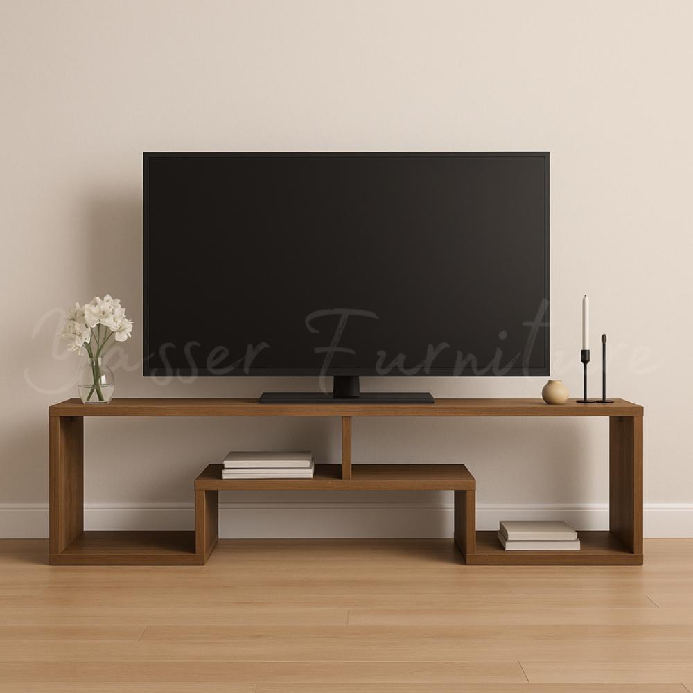 تصميم خشبي مودرن بأرفف داخلية عملية، متوفرة بعدة ألوان، مثالية لتنظيم الأجهزة ولمسة ديكور أنيقة.
