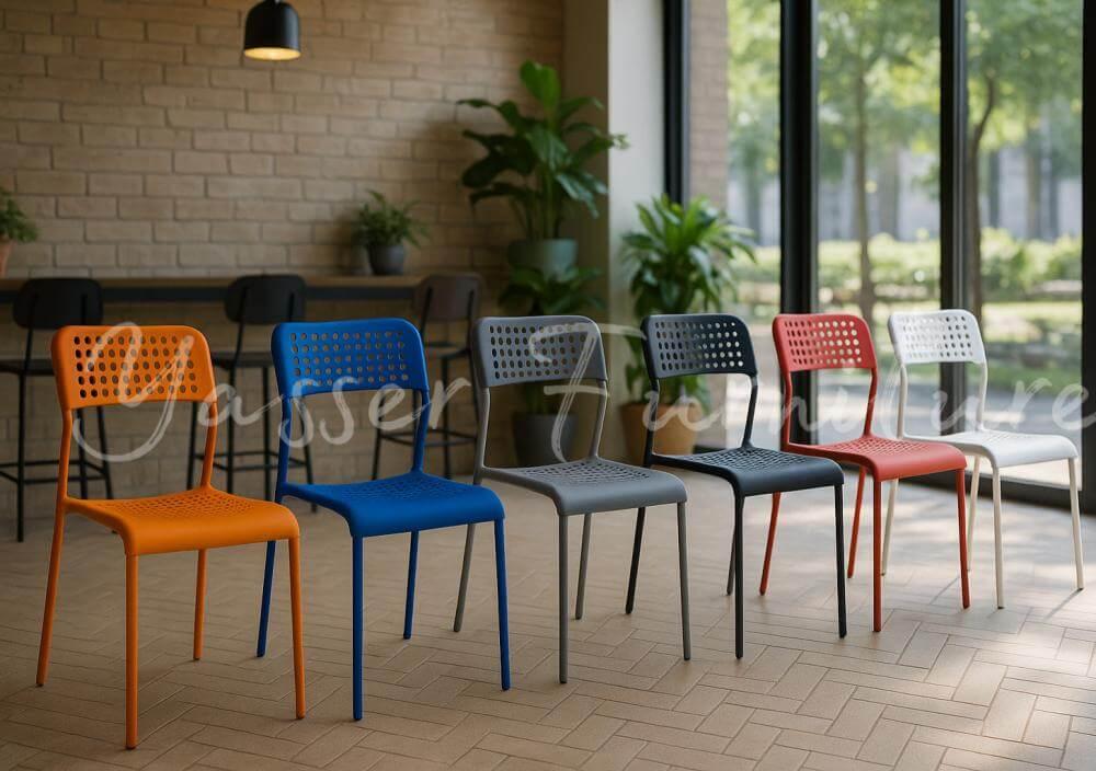 كرسي عملي بتصميم عصري، مصنوع من هيكل حديد معدني مع مقعد وظهر بلاستيك مزوّد بفتحات تهوية تمنح راحة وجمالية فريدة يتميز بخفة وزنه مع قدرته على تحمل وزن حتى 100كيلو، ما يجعله مثالياً للاستخدام الداخلي والخارجي سهل النقل والتخزين والتصفيف، خيار مثالي للمساحات المتنوعة والفعاليات المختلفة.